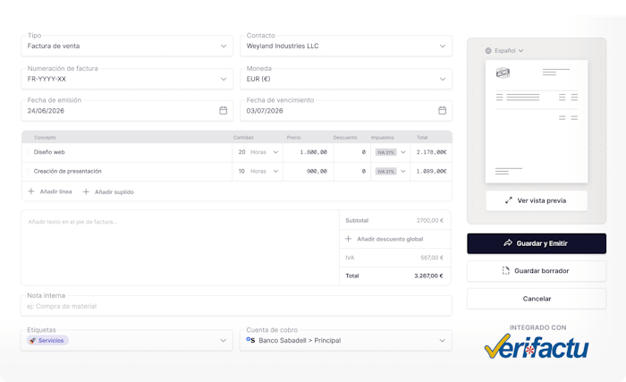 - Crea facturas compatibles con Verifactu y TicketBAI