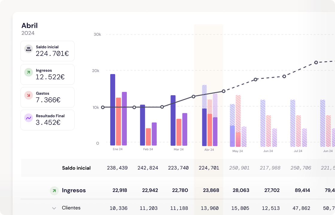 Crea escenarios y proyecta el futuro de tu empresa con datos actualizados en tiempo real.