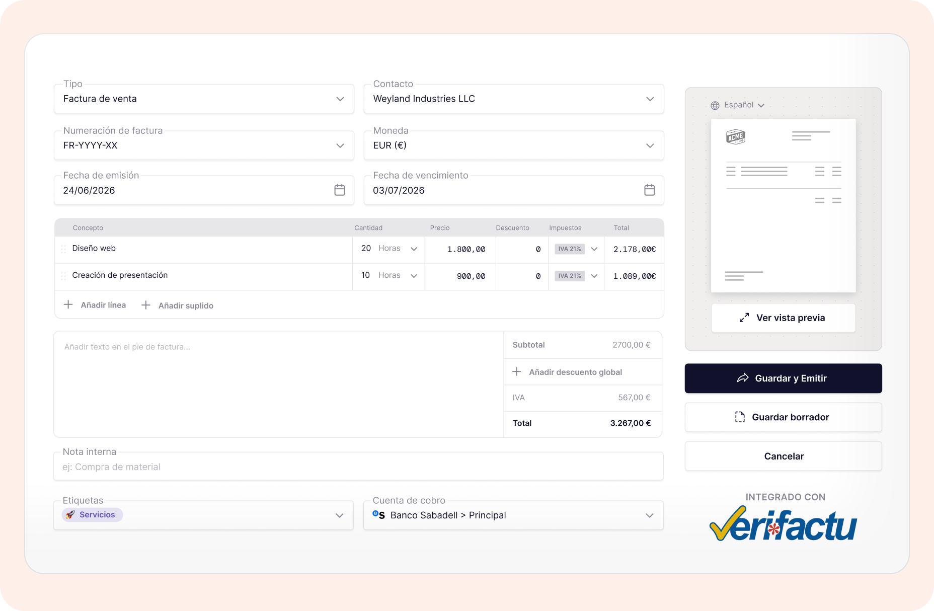 Facturación profesional completa