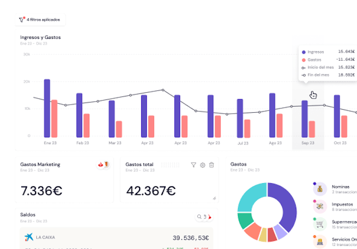 - Filtra tus datos por periodos temporales, categorías o productos bancarios