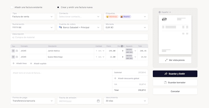 - Crea facturas compatibles con Verifactu y TicketBAI
