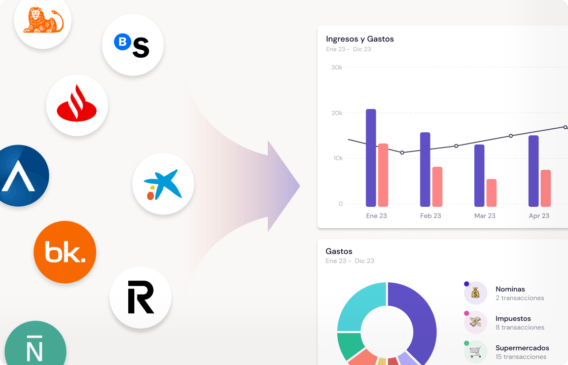 - Conecta con más de 10.000 bancos de Europa y Estados Unidos.