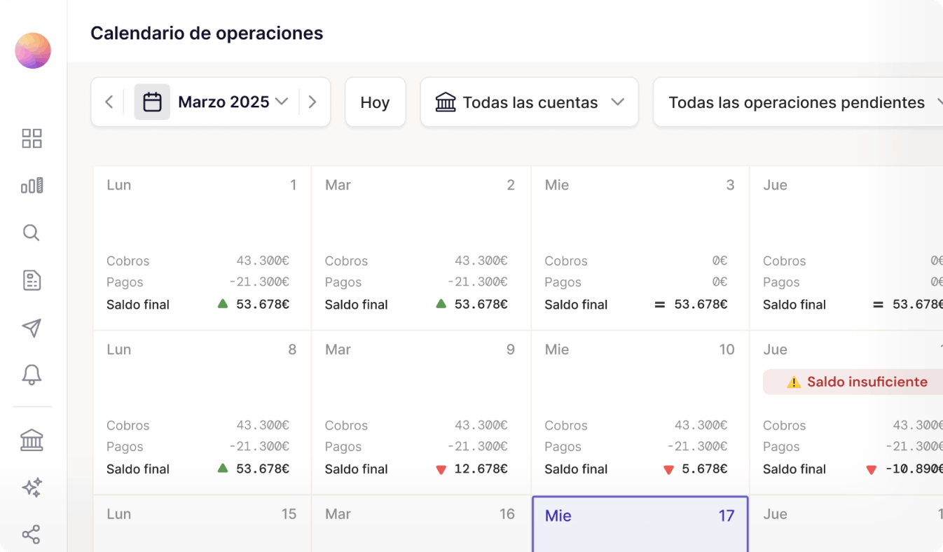 - Proyecta tus facturas y operaciones en un calendario de cobros y pagos.